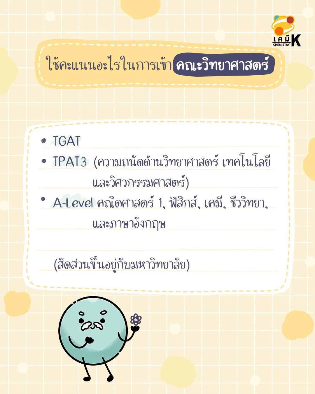 ถ้าน้องอ่านมาจนถึงตรงนี้แล้ว สนใจที่จะเข้าคณะวิทยาศาสตร์ แล้วต้องใช้คะแนนอะไรบ้าง พี่ก็ได้รวบรวมมาให้น้องๆแล้ว