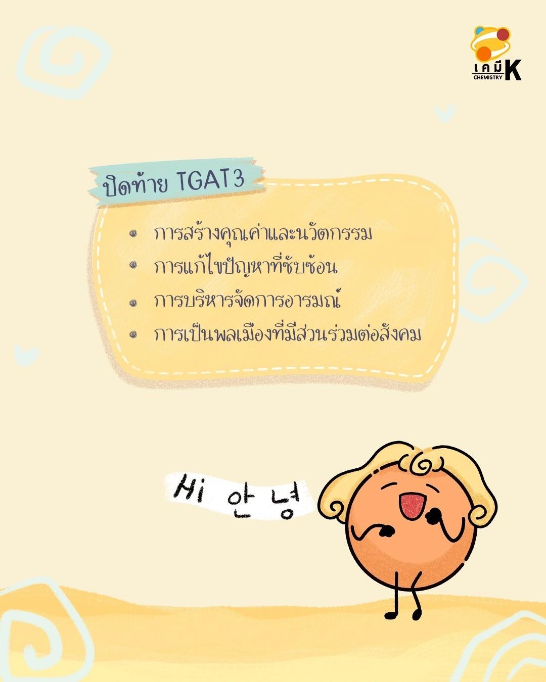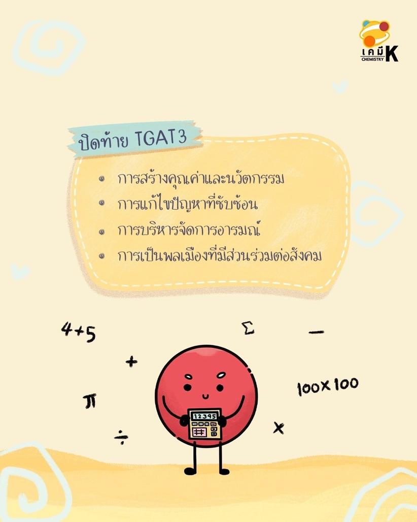 ปิดท้ายด้วย TGAT 3 สมรรถนะการทำงาน ซึ่งพาร์ตนี้ไม่ได้วัดแค่ความรู้ แต่จะวัดทางด้านทัศนคติและความพร้อมในการทำงานอีกด้วย