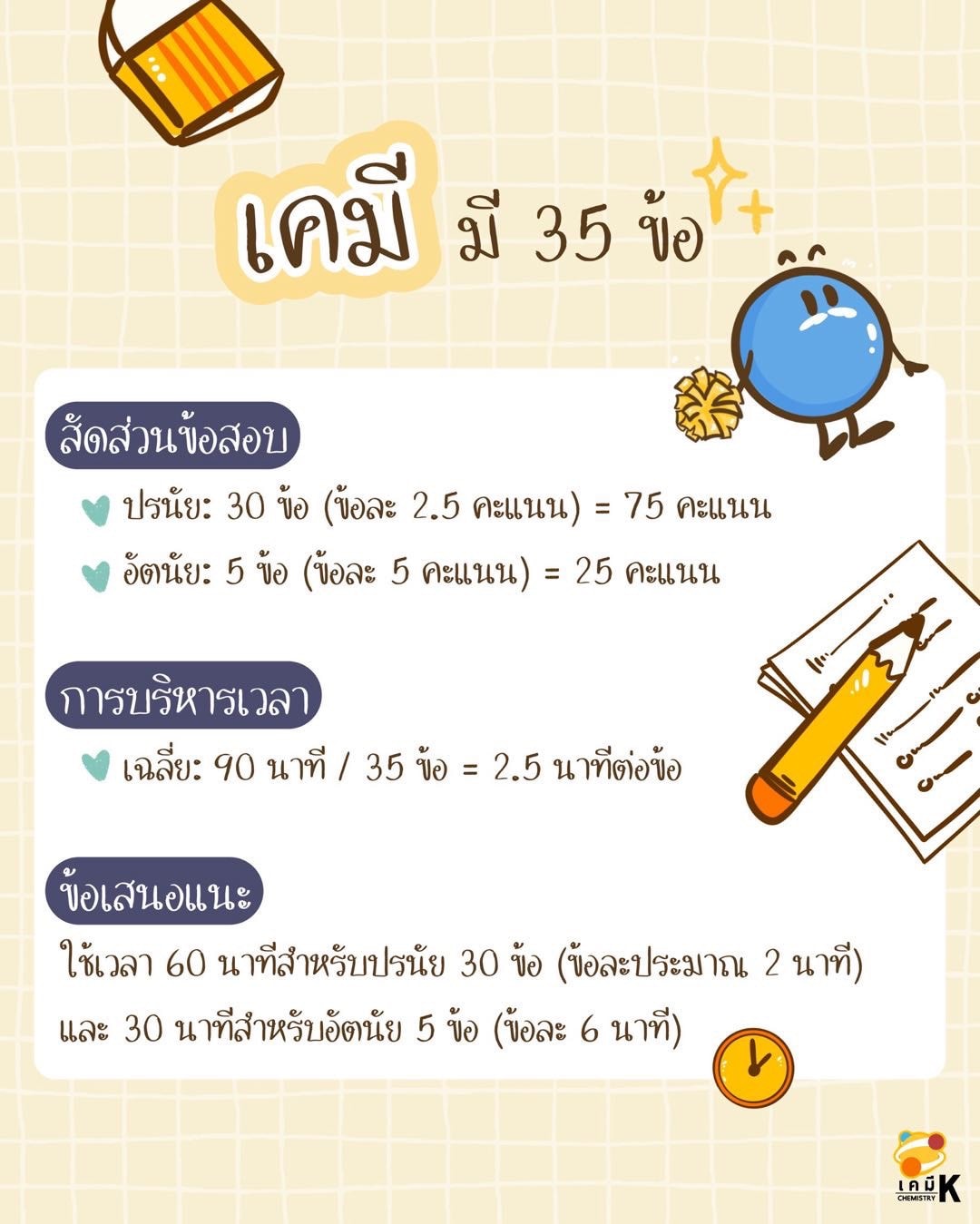 เคมี มี 35 ข้อ 90 นาที